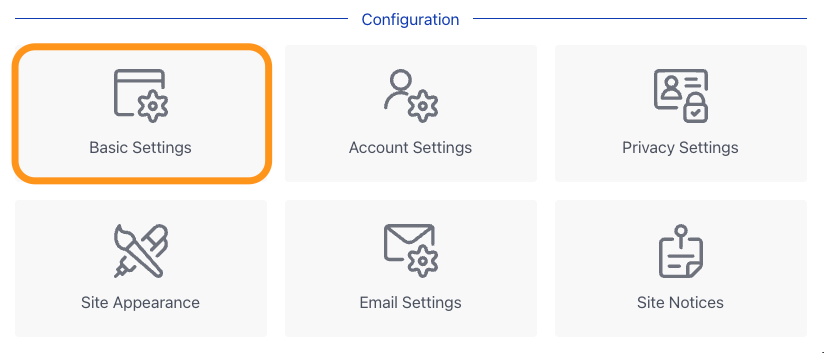 In the Site Administration area, under Settings, you will find configuration options and the Basic Settings sub-section. The Basic Settings menu will allow you to define and configure the most basic properties of your Recollective site, such as the Site Name, Default and Available Languages, and Time Zone.