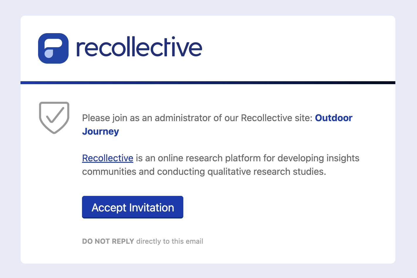 Provided that a custom sending address has not been configured, Clients will receive an email invite from no-reply@recollective.email.