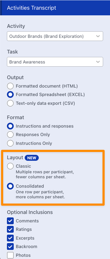 We're introducing a new Consolidated layout option for Excel Activity Transcripts, giving you more control over how your data is structured. This new format places all of a participant's responses on a single row, making it faster to analyze, share, and integrate your data.